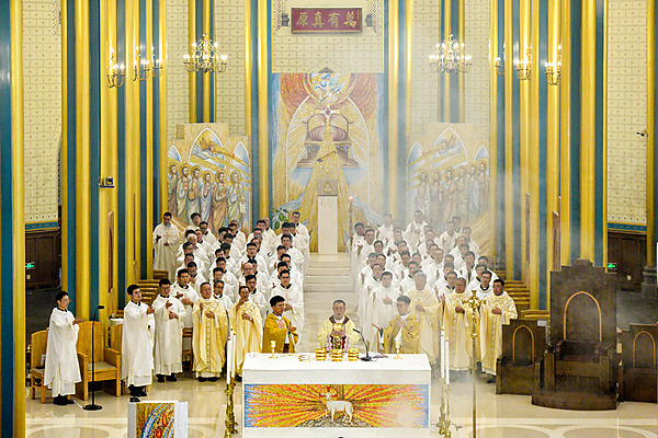 9月19日,北京教区甄雪斌助理主教在西什库主教座堂(北堂)主持弥撒,为若亚敬·孙亚敬和方济各·段志军两位执事举行司铎圣秩授予礼。80余位神父共祭弥撒。北京天主教神哲学院师生、北京教区若瑟修女会修女、新铎的亲友及众教友欢聚一堂,共同见证了这一充满恩宠与神圣的时刻。这是上主所安排的一天,两位新铎的诞生,为北京教区司铎团注入了新鲜血液。弥撒中,教区也庆祝了郭文武、卞寅、孙永书、杨宇、师惠敏、王和平六位神父晋铎银庆。