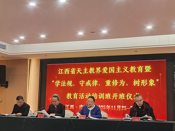 11月25日至27日,江西省天主教界爱国主义教育暨“学法规、守戒律、重修为、树形象”教育活动培训班在南昌顺利举办。省民宗局宗教二处相关负责同志出席开班式,省天主教“两会”主席李稣光主教主持开班式,全省天主教界神父及省“两会”常委共40余人参加培训,培训期间同步召开教育活动部署会。