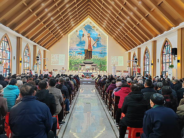 12月3日,无锡市天主教鹅湖天主堂举行本堂主保瞻礼活动。此次瞻礼感恩弥撒由天主教南京教区陆新平主教主祭,来自南京教区的20余位神父共祭;南京教区修女院及教友信众共计300余人参与此次瞻礼。区、街道统战、民宗部门相关领导及市天主教爱国会班子成员亦亲临现场观礼指导。