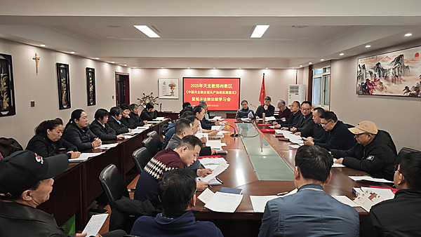 12月3日,郑州教区在惠济区清华园路天主教堂会议室召开专题学习会议。35名神职人员、修女及市天主教“两会”人员齐聚一堂,深入学习系列重要制度文件,在思想淬炼与精神洗礼中凝聚起推进教区健康发展的共识与力量。