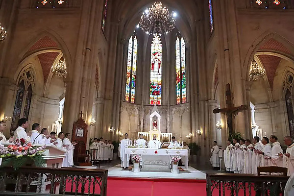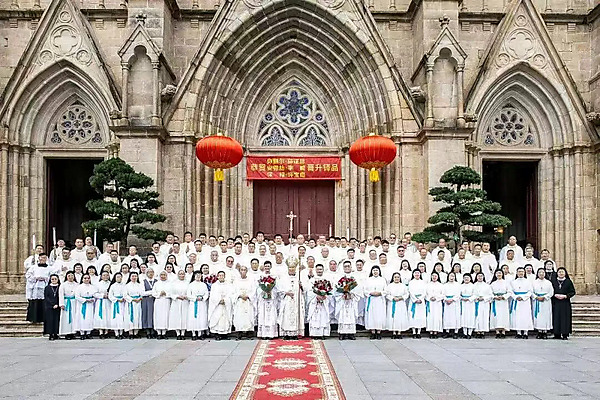 12月4日,广东广州石室耶稣圣心堂举行圣职晋铎仪式,弥额尔·薛证恩、安德肋·李威、保禄·许宝彪三位执事正式晋升为司铎,自此将以新身份投身社会服务与人文关怀工作,开启服务大众的新征程。
