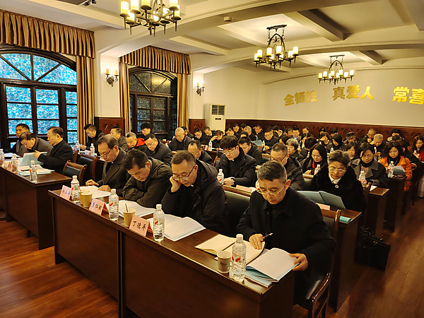 1月11日至12日,重庆市天主教六届二次委员会在渝中区若瑟堂召开。会议以天主教中国化重庆实践为主线,紧扣“学法规、守戒律、重修为、树形象”教育活动主题,部署全年重点工作,着力强化自身建设,筑牢从严治教根基。市委统战部、市民宗委相关业务处室负责人到会指导,市天主教“两会”75名委员参会。