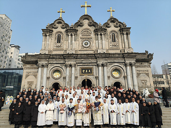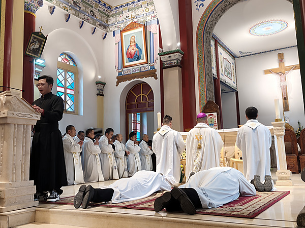 1月24日,西安教区党明彦主教在圣方济各主教座堂,为杜川·马尔谷和毛巩固·若望两位修士授予执事圣秩,教区30余位神父和修士、修女与众教友参礼。