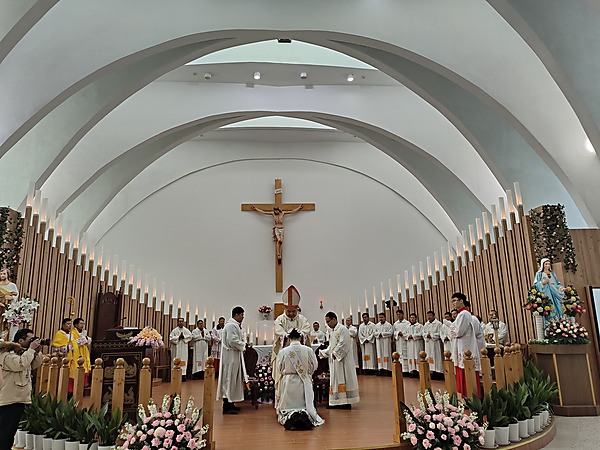 2月10日上午,天主教徐州教区徐建东执事晋铎典礼在韩山天主堂举行。晋铎典礼由王仁雷主教主礼,来自山东、山西等地及徐州教区全体神父共祭,教区全体修女,新铎的家人、亲友及教友共同见证了这神圣的时刻。