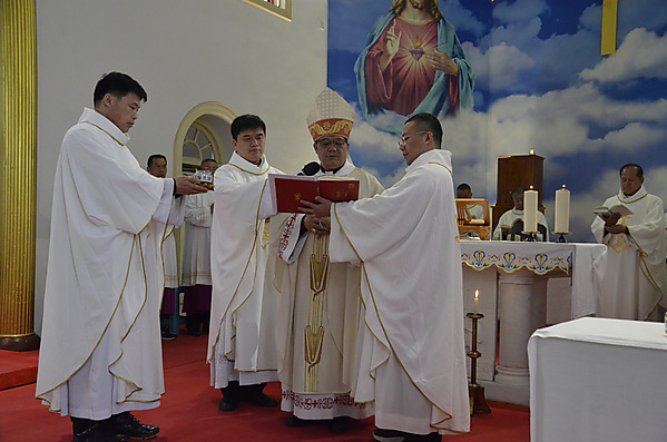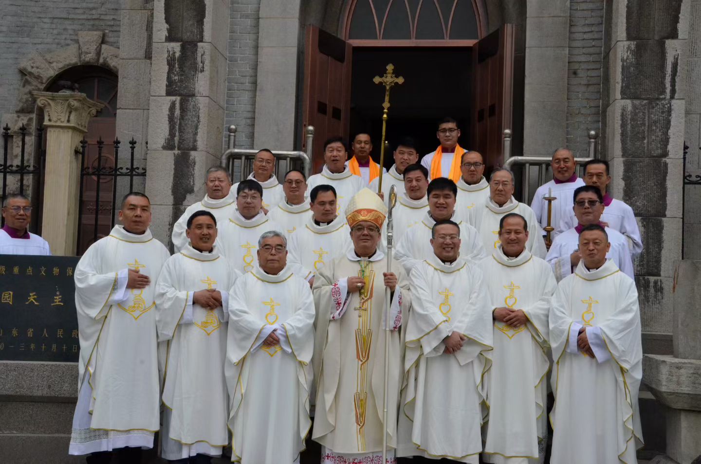 3月30日上午,杨永强主教携周村教区全体神职人员,在教区主教座堂举行了圣油弥撒,纪念主基督建立的圣秩圣事。杨永强主教主祭,杨帆神父与姜义元神父襄礼,共18位神父共祭,修女及教友600余人参礼。
