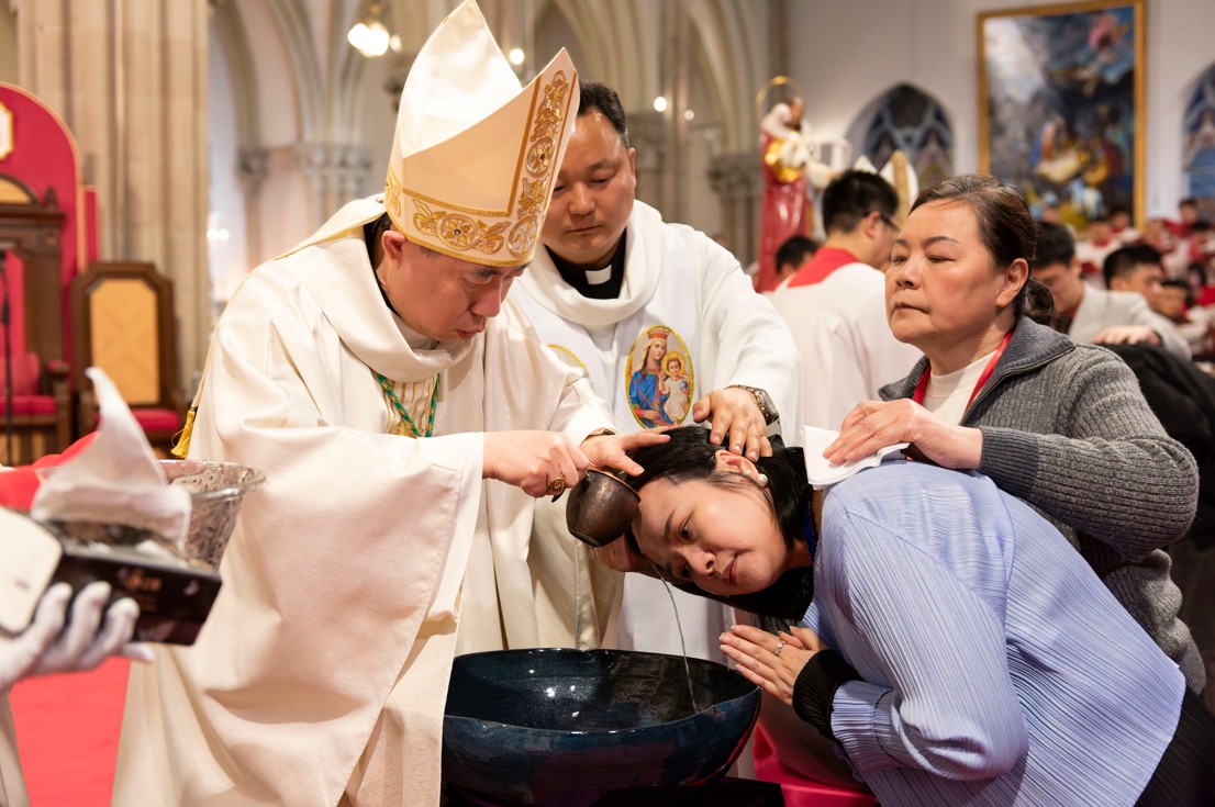 4月4日,上海教区神长教友在全市各堂区举行复活节夜间庆典。上海教区沈斌主教、吴建林辅理主教在徐家汇主教座堂与大家相聚,共同庆祝主耶稣基督的复活,并为98名候洗者施行入门圣事。